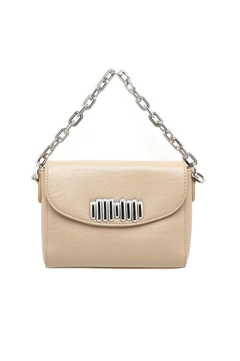 Відкрийте для себе витонченість за допомогою нашої елегантної сумочки ланцюга, що містить гладкий відтінок з тонкою текстурою для повітря елегантності. Унікальне закриття бару сріблястого тону додає сучасного чуття, тоді як структурована форма забезпечує шикарний силует. Просторий інтер'єр ідеально підходить для необхідних, а відшліфований ланцюговий ланцюговий ремінь пропонує універсальні варіанти стилю. Ідеально підходить для моди, яка шукає індивіда, яка шукає штриху розкоші.