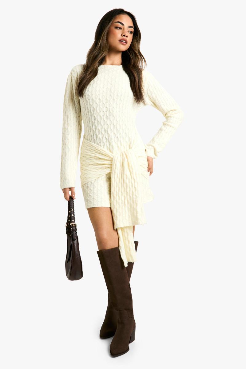 М’який кабель негабаритні деталі краватки в трикотажному міні -сукні