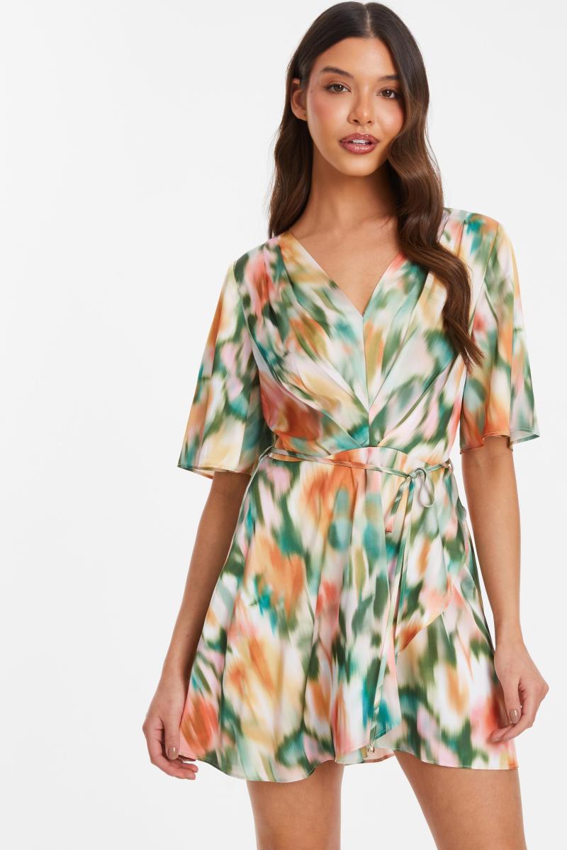 Різнокольоровий відтінок мармурового друку з атласним костюмом з багаторівневим дизайном. Ідеально підходить для виходу або святкового одягу, цей ігровий костюм додає штриху гламуру вашому гардеробу.