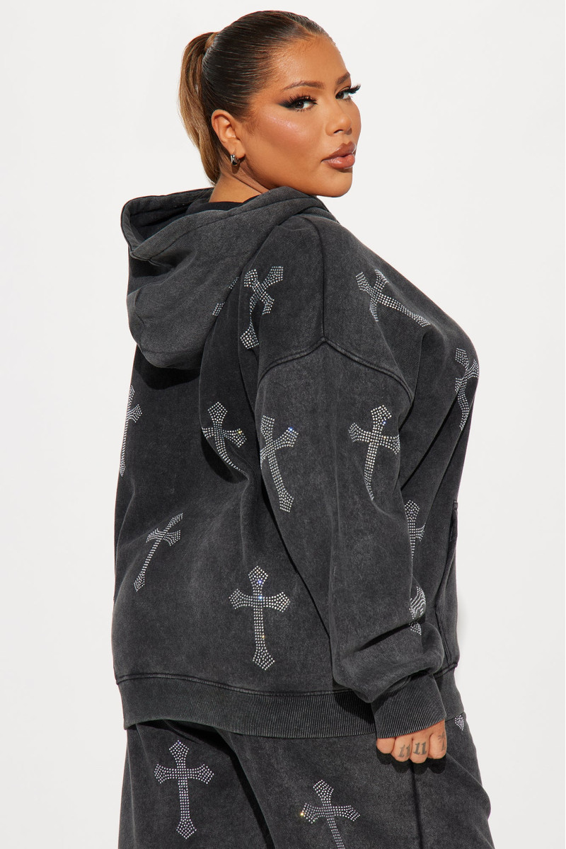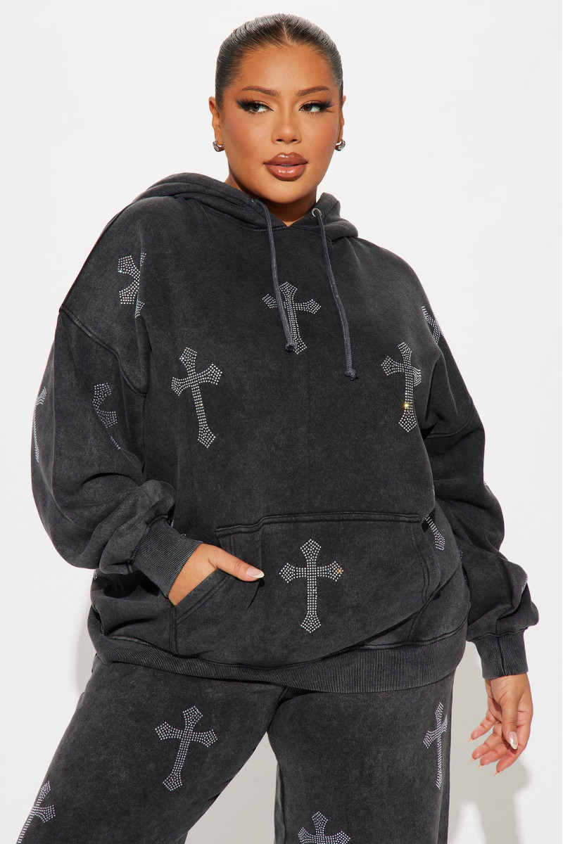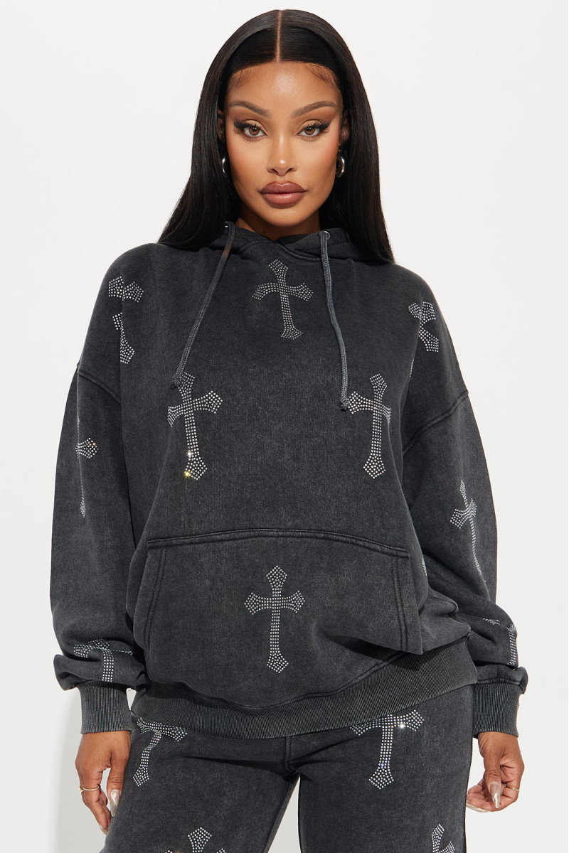 Стильне худі вільного крою з довгими рукавами та зручною кишенею спереду. Особливого шарму йому надають вишукані стрази та ефектний вигляд, що досягається завдяки спеціальному процесу прання, який робить кожну річ унікальною. Ця модель чудово пасує до штанів "Sunday" з ефектом прання та стразами, створюючи завершений образ.