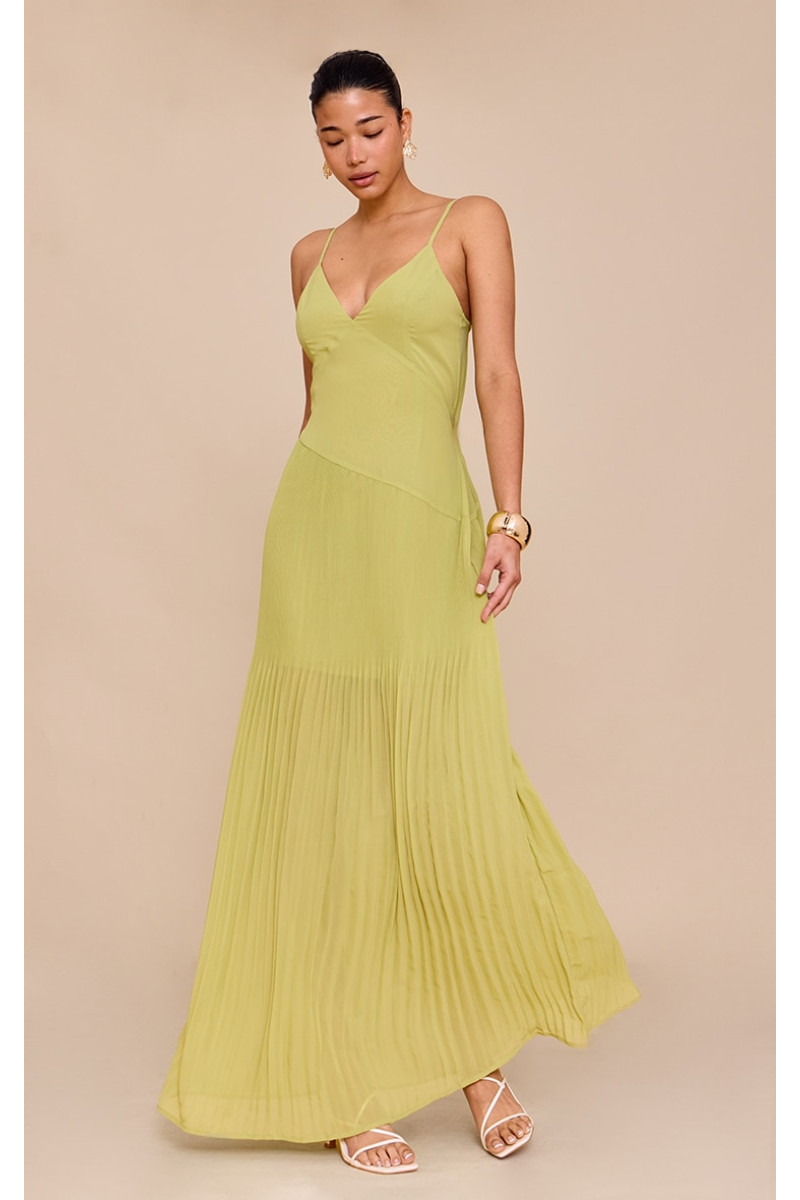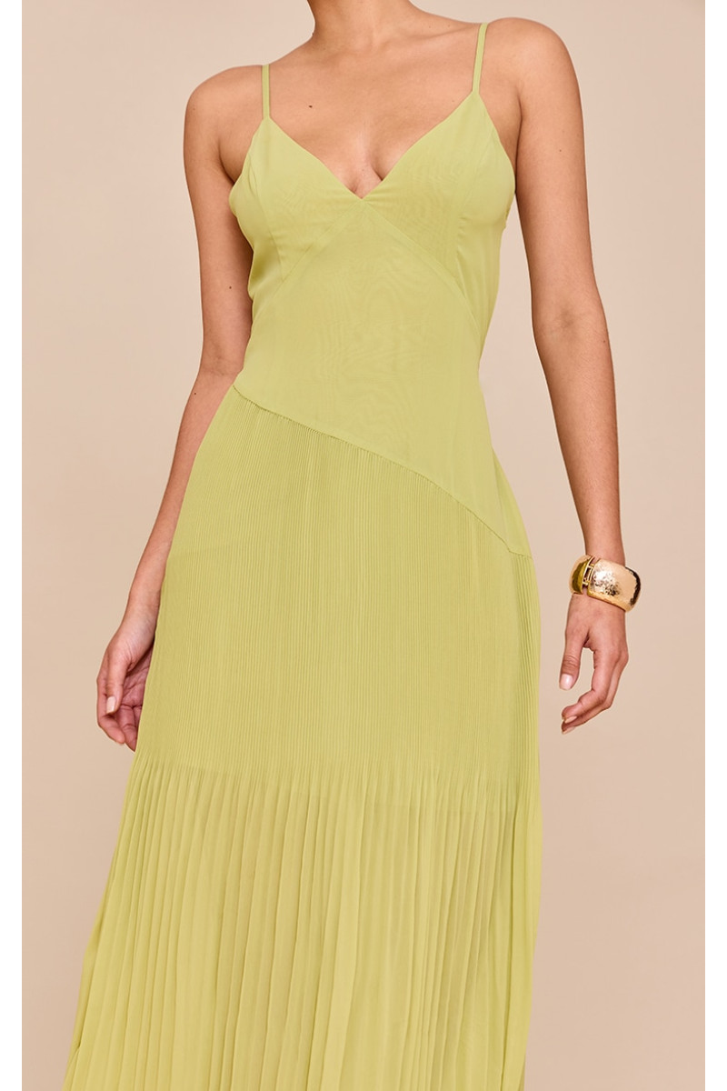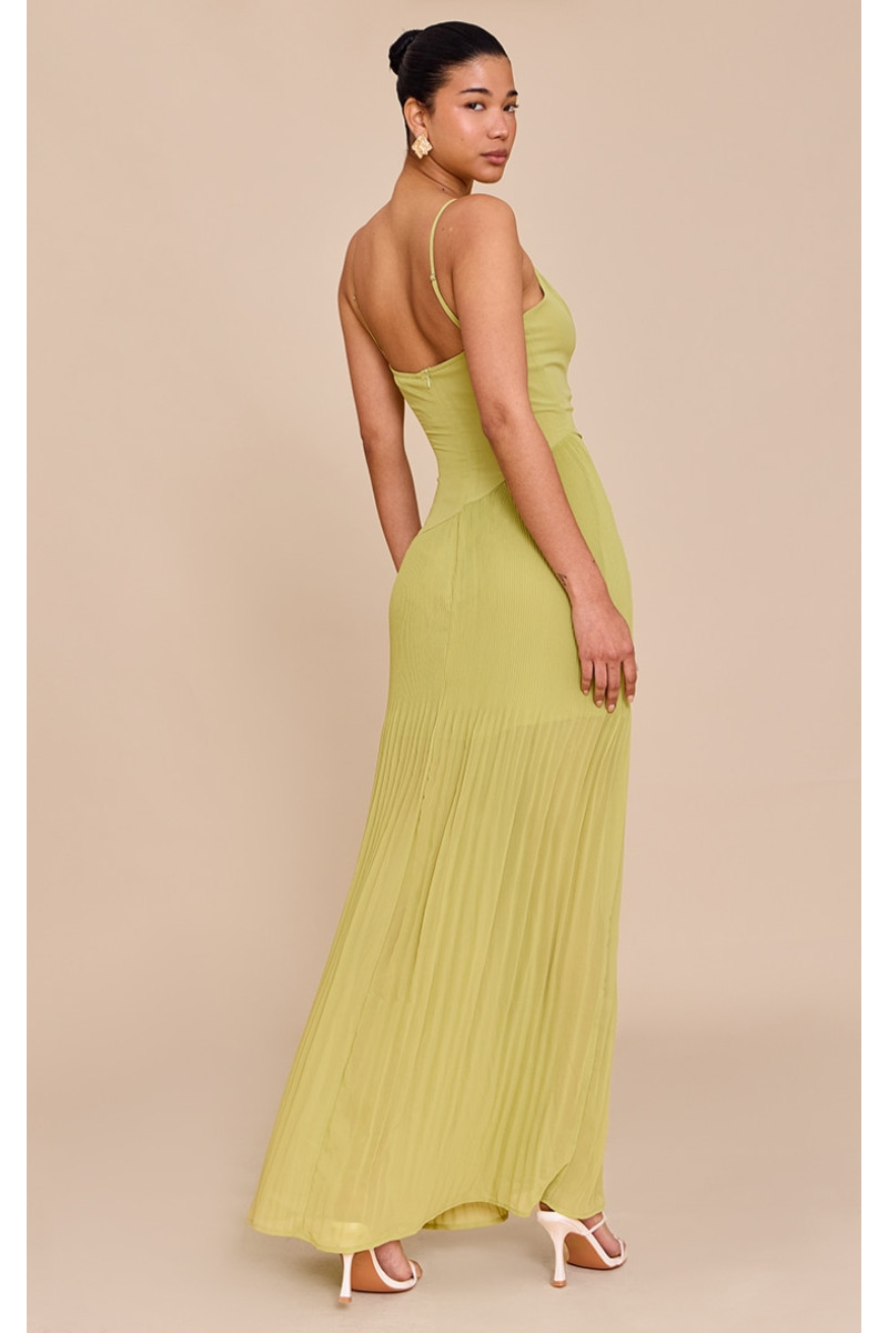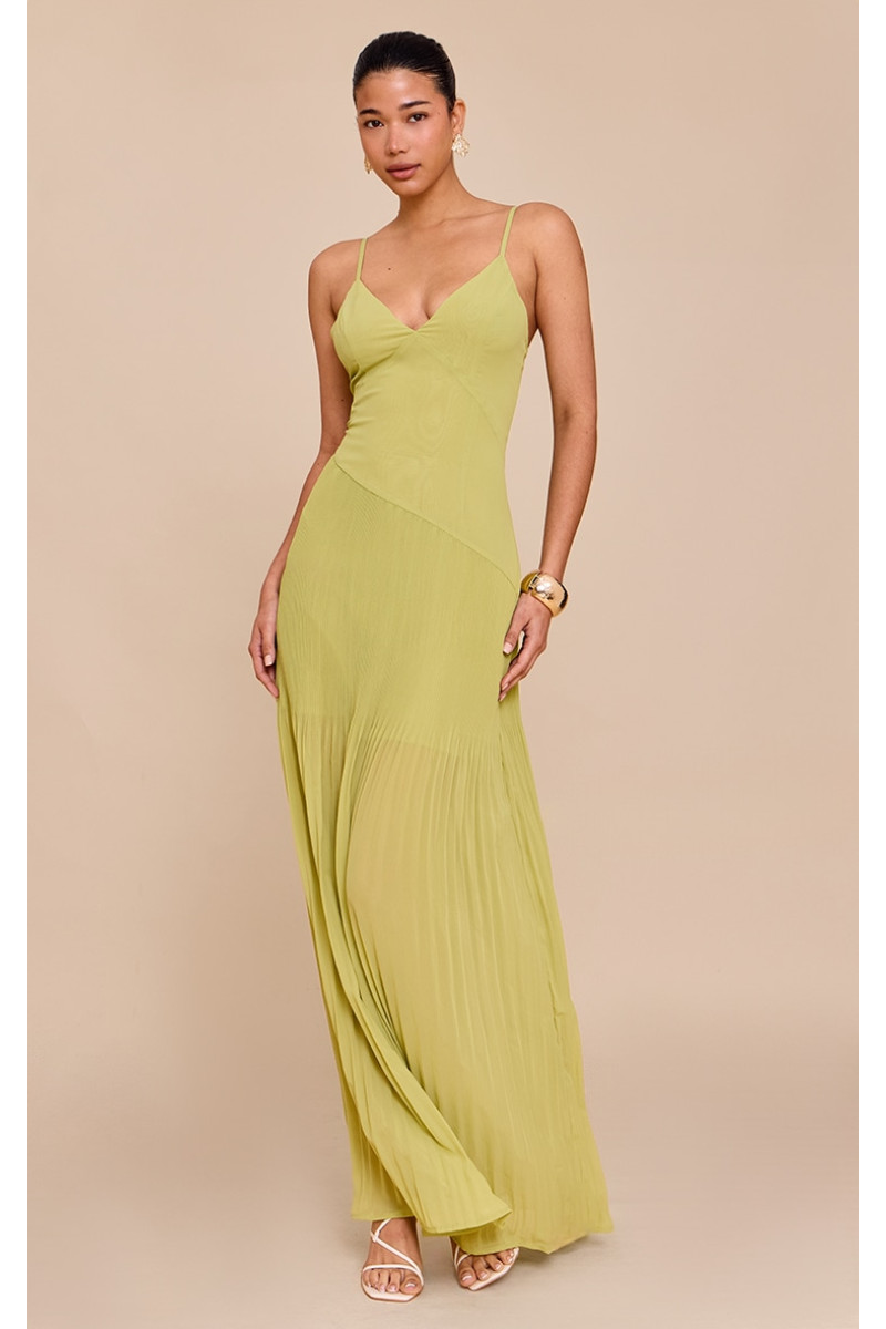 Власний вечірній естетику в цьому вапняному сплетеному плісированому розкладі деталі Spaghetti Maxi. Це плаття, створене з тонізованого матеріалу вапна, має тонкі ремінці спагетті, декольте V та влеслива довжина максі. Носіть його з ячменю - там ковзання на підборах та золотих прикрасах для повороту голови. Шерковики: Спипагетті Страпоксіон: Вечір