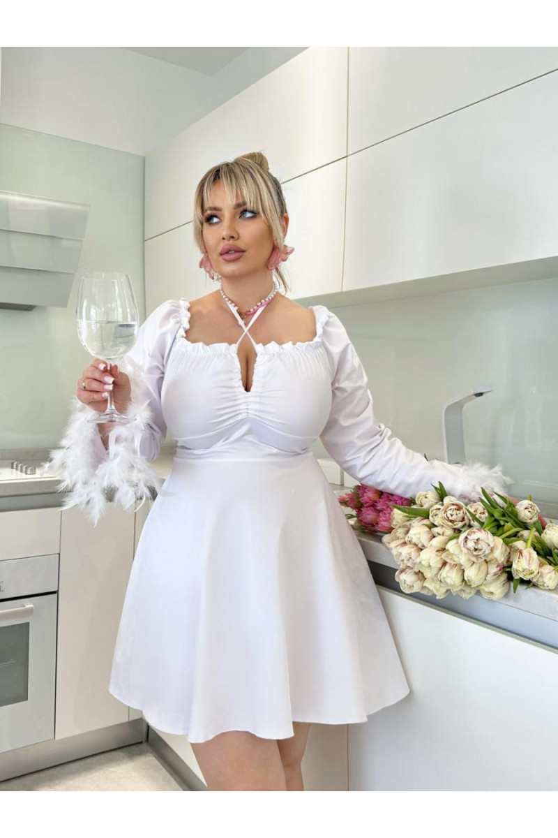 Матеріал: костюмна Ткани на котоновій основі. Сукню можна моделювати: мотузочки, розташовані в районі грудей, можна зав’язати бантиком або на шії. Позаду шнурівка – регулює приталеність. Виміри: 42-46: Довжина виробу 84 см. ОГ 80-96 см, ОТ 56-82 см (ззаду шнурується і приталюється), ОС 82-100 см 48-52: довжина 90 см, ОГ 98-105, ОТ 75-95, ОС 104-120 54/58: довжина 90 см, ОГ 106-117, ОС 118-133 60-64: ОГ 120-130, ОТ 88-130, ОБ 130-145