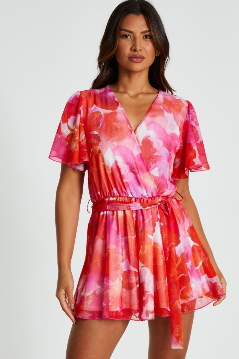 Цей ігровий костюм має квітковий металевий дизайн із стилем обгортання та кутовими рукавами, що робить його придатним для фестивалів та літніх виїздів. Ідеально підходить для комфортного та стильного пристосування.